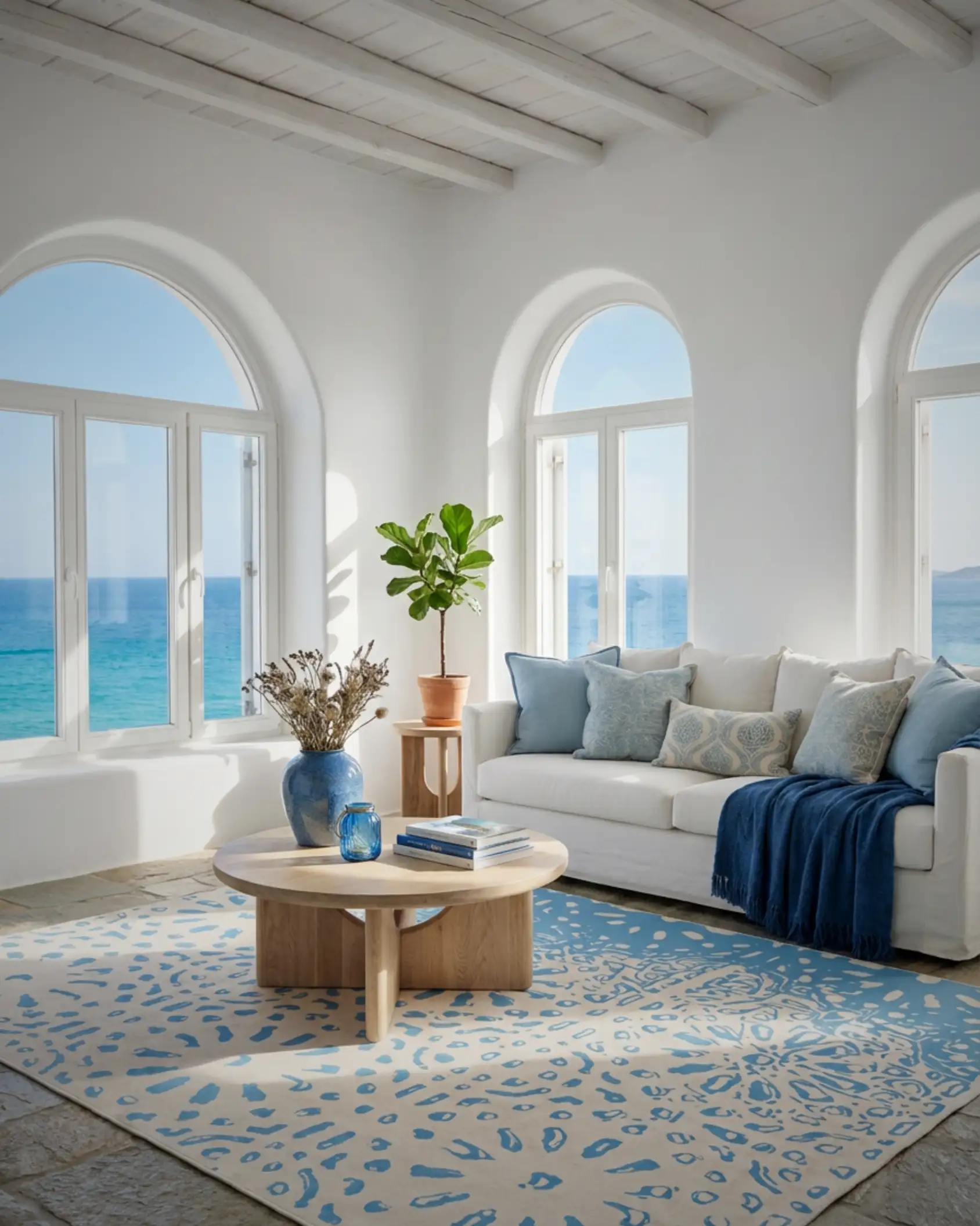 Ce tapis aux reflets bleu ciel s’inspire des motifs délicats des zelliges marocains. Les formes géométriques se fondent dans un dégradé subtil, évoquant la lumière du matin se reflétant sur des carreaux vernissés. Bleu Zellige apporte fraîcheur et douceur à votre intérieur, tout en évoquant un art de vivre méditerranéen empreint de sérénité et de pureté.