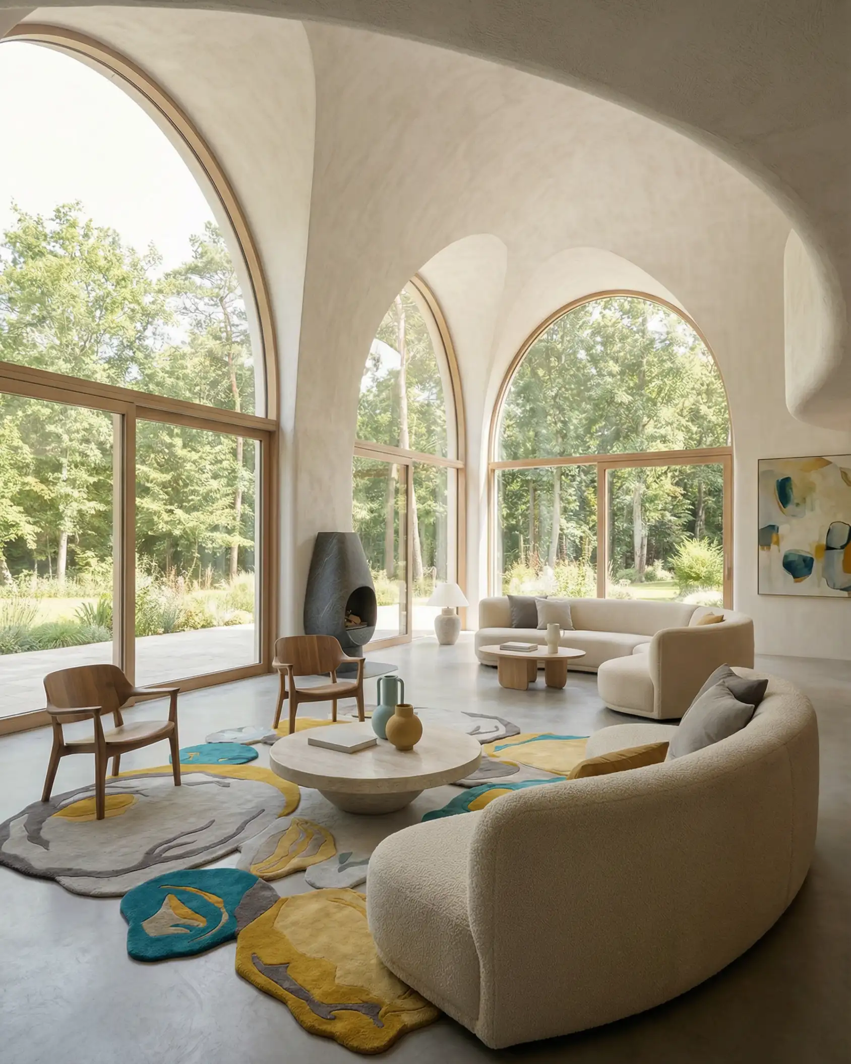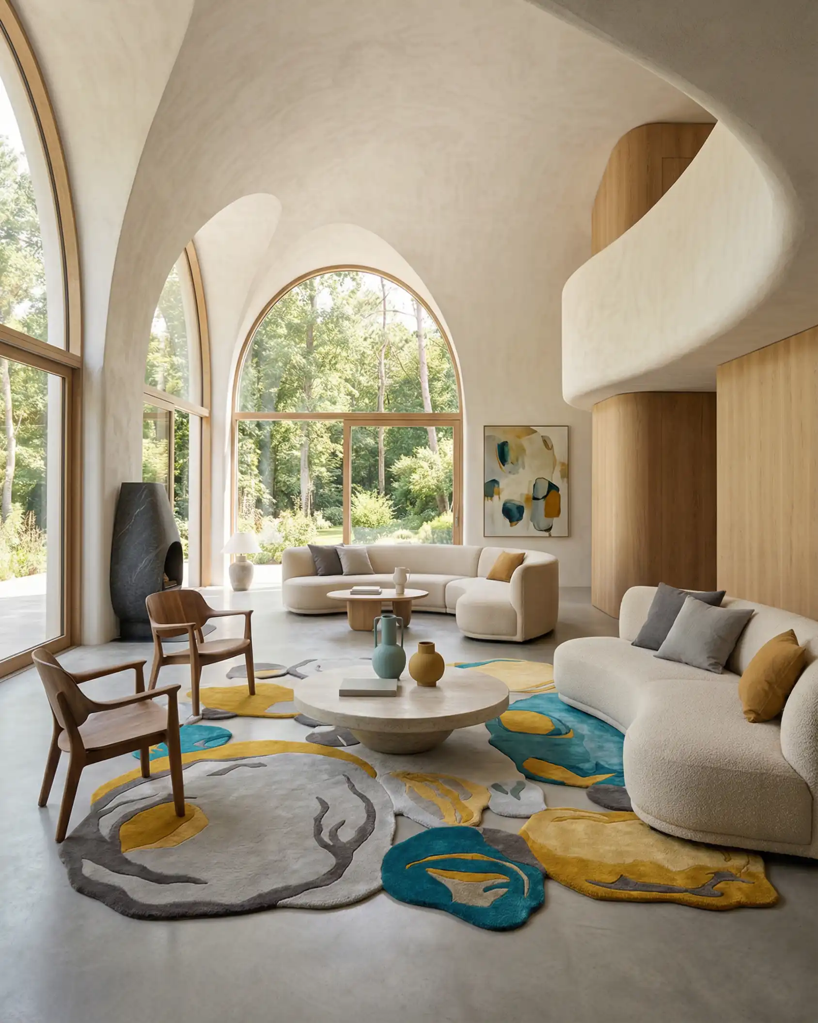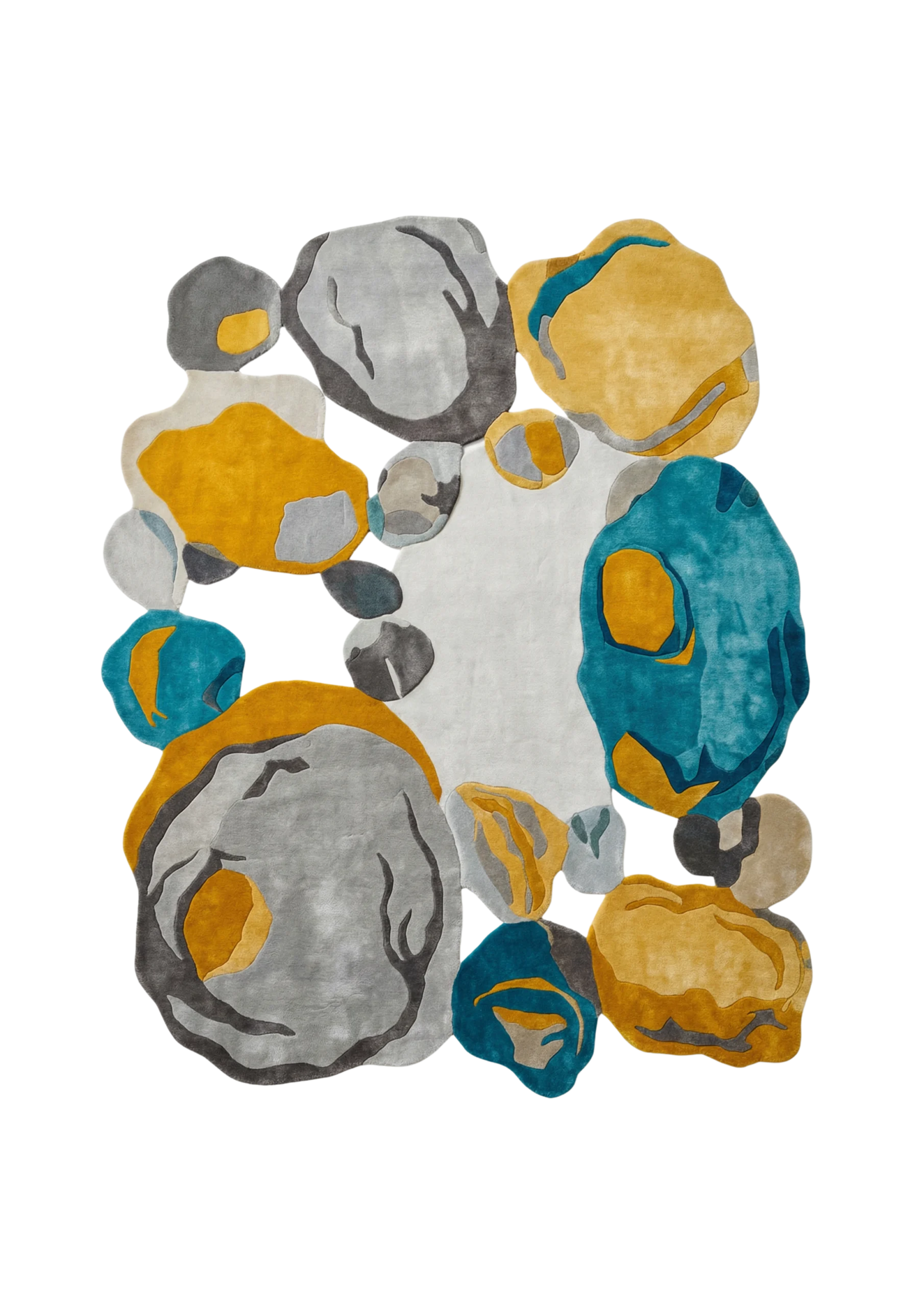 Sédiments Modernes réinterprète les formes minérales à travers une écriture résolument contemporaine. Les aplats contrastés, les contours affirmés et le jeu graphique des couleurs — gris pierre, ocre solaire et bleu profond — donnent au motif une lecture actuelle et structurée.