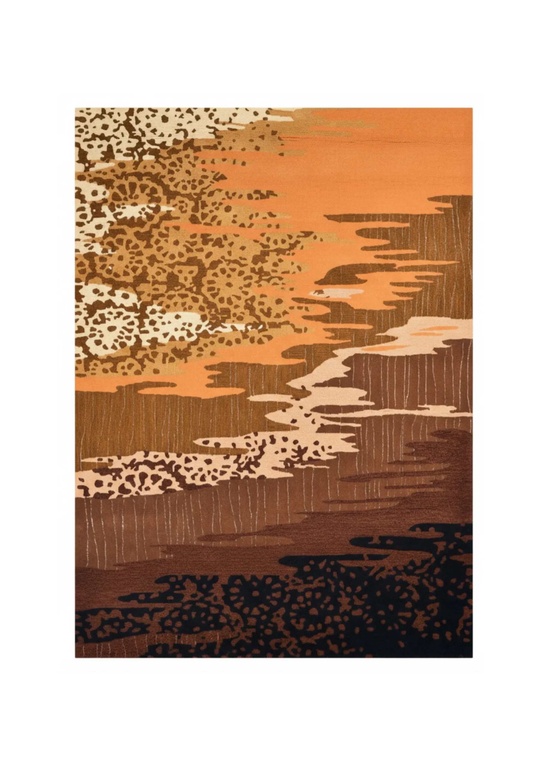 Ce tapis combine des teintes chaudes, terre cuite, brun et noir, dans un motif fluide et organique. Ses dégradés rappellent la chaleur du désert et la force de la nature. Terre Sauvage est une pièce de caractère, à la fois chaleureuse et moderne, qui sublime les espaces avec intensité.